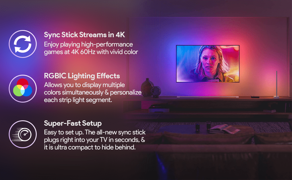 - Syncs ambient lighting with on-screen content in real time