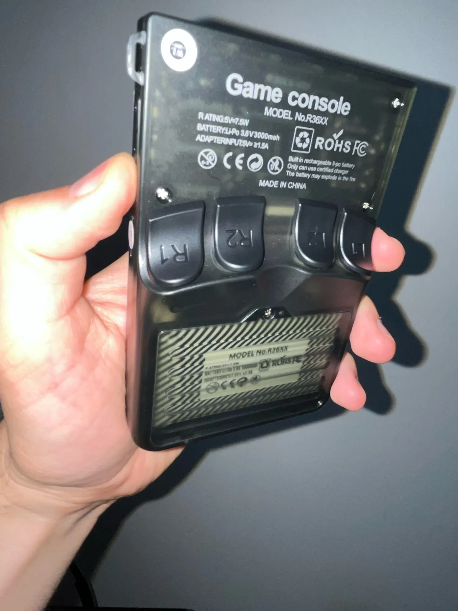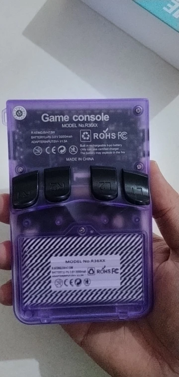 The R36S handheld console is fueled by a 3,200–3,500mAh rechargeable lithium battery, depending on the model variant. This battery provides up to 6–8 hours of gameplay on a full charge, making it ideal for long commutes or retro gaming marathons.